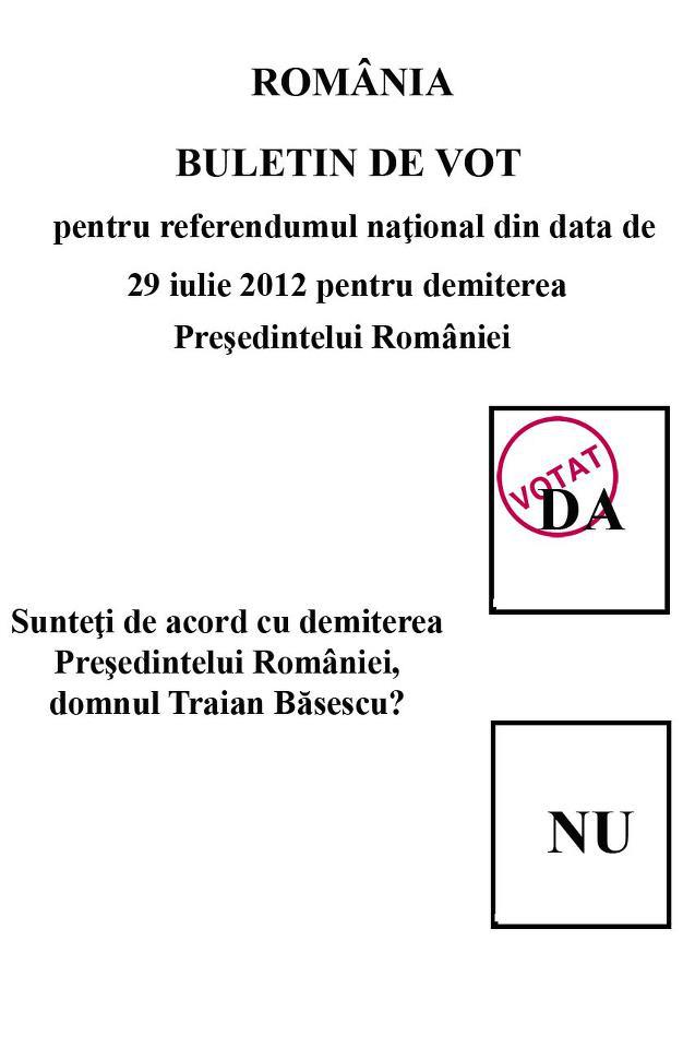 „Sunteţi de acord cu demiterea Preşedintelui României, domnul Traian Băsescu?”