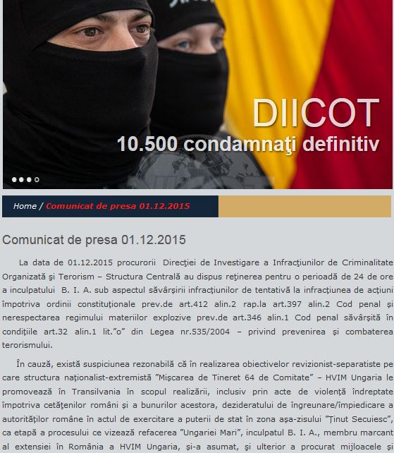 DIICOT, alături de DNA şi cu sprijinul SRI, se numără printre pilonii luptei anticorupţie din România. Unitatea de elită se ocupă, după cum îi spune şi numele, atât de contra-terorism cât şi de crima organizată, de la nivelul traficanţilor de droguri până la cel al purtătorilor legitimaţiilor de parlamentari. Succesele din ultimii ani ale Direcţiei sunt de necontestat. Şi atunci cum se explică atacarea DIICOT şi a SRI şi ridiculizarea realizărilor instituţiilor în cazul atentatorului cu bombă Beke Istvan Attila, liderul maghiar al grupării extremiste HVIM, de către diverşi pretinşi “deontologi” ai spaţiului public din Ungaria şi România, de la politicienii filoruşi de la Budapesta şi servitorii lor de la Bucureşti la CTP, Alina Mungiu şi amploaiaţii Adevărul, Hotnews şi Digi (cel din urmă un organ unguresc şi în acte)? Materialul de mai jos îşi propune, printre altele, să răspundă şi la această “dilemă”?